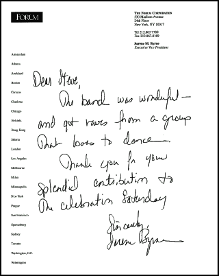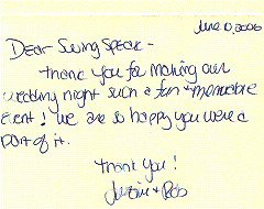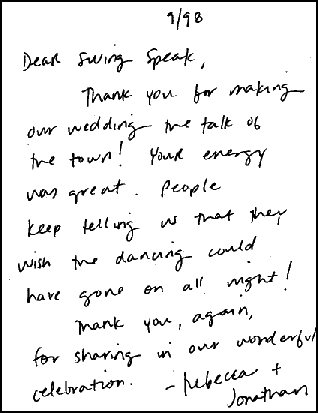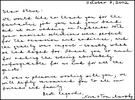 thank you for the fantastic job you and your band did at our wedding on